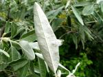 Feuilles courtement pétiolées, ovales-oblongues, vert grisâtre sur le dessus, blanches-argentées en-dessous.