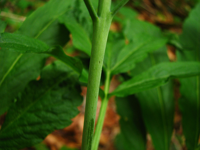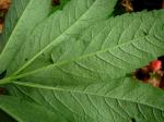 Feuilles à 5-9 folioles opposés, ovales-lancéolées, irrégulièrement dentées, les caulinaires 2-4 rapprochées de la grappe florale, sans bulbilles à la base.