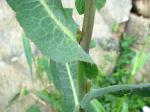 Feuilles dressées, la plupart déviées obliquement à leur base, glauques, avec des petites épines sur les bords et sur la nervure dorsale, embrassantes et auriculées, à lobes larges.