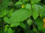 Feuilles alternes, pétiolées, ovales, lâchement dentées, molles et minces.