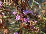 Fleurs violettes, petites, à 5 pétales concaves et arrondis, regroupées en épillets droits, nombreux, rapprochés et souvent imbriqués, en épis assez courts, étalés et à la fin arqués vers le bas ; bractée intérieure 3 fois plus longue que l'extérieure ;
