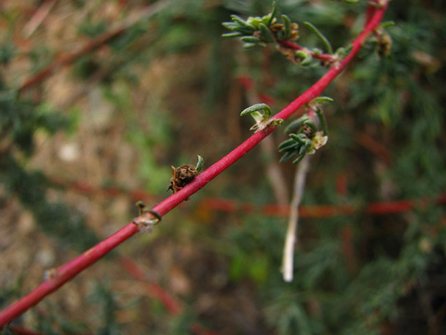 Sous-arbrisseau de 30-80 cm, finement pubescent ou velu, à tiges nombreuses, décombantes ou redressées, blanchâtres ou rougeâtres, à rameaux raides et ascendants.