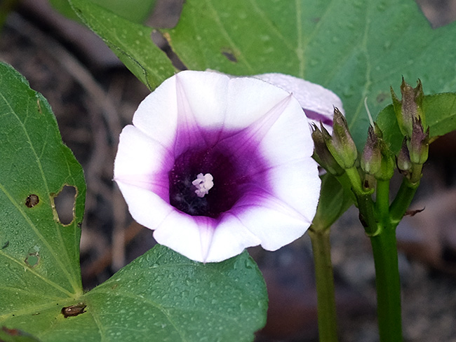 Fleur blanche à gorge violette, à