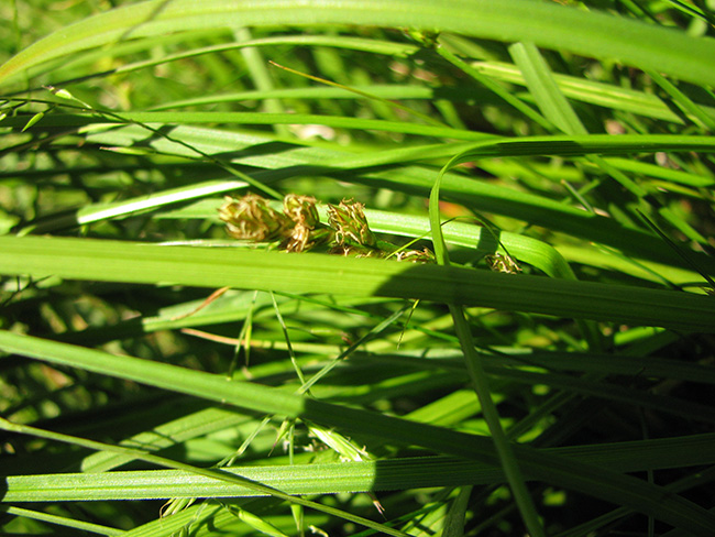 Inflorescence en épis oblongs, dense ou un peu lâche à la base, vert fauve, formé de 4-9 épillets presque rond mâles au sommet ; bractées pointues ; écailles ovales-mucronées ; 2 stigmates.