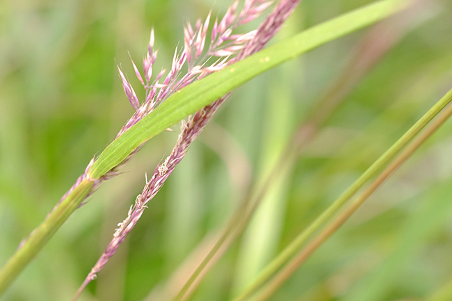 Inflorescence en panicule longue de 8-15 cm, dressée, blanchâtre ou violacée, à rameaux les plus courts garnis d'épillets jusqu'à la base ; fleur sessile, accompagnée d'un rudiment stérile.