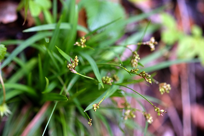 Fleurs en épi. Le mâle, terminal, solitaire, presque sans tige, oblong, panaché de roux et de blanc, à écailles obtuses ; épis femelles presque globuleux, à plusieurs fleurs, 2-4 rapprochés de l'épi mâle et presque sans tiges, 1-3 solitaires sur de longs pédoncules basilaires filiformes décombants ; bractées engainantes, à pointe herbacée ; écailles acuminées, fauves-scarieuses ; 3 stigmates ; utricules gris fauve, à peine pubérulents, obovales-trigones (5 mm), fortement nervés, à bec très court dépassant un peu l'écaille.