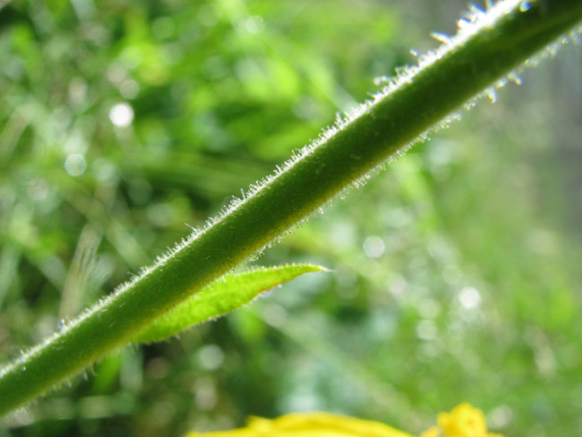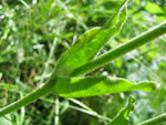 Feuilles en rosette à la base, appliquées au sol, ovales, celles de la tige plus petites et lancéolées.