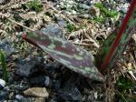 Feuilles (2) situées à la base, opposées, maculées de taches brun-rougeâtre.
