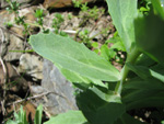 Feuilles dressées, planes, larges, obovales ou oblongues, les inférieures brièvement pétiolées, les supérieures sessiles et arrondies à la base, denticulées.