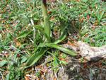 Feuilles étalées, brillantes, groupées en rosette, généralement maculées de tâches noirâtres. Celles de la tige réduites à des gaines.