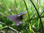 Fleurs lilas pâle, assez petites, inodores; sépales ovales, obtus; pétale inférieur veiné de violet à la base; éperon obtus, dépassant les appendices du
