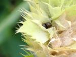 Fleurs jaunâtres, en épi court et compact; calice à poils appliqués, à dents presque égales, longues de 4-5 mm, lancéolées, épineuses, étalées-dressées, aussi longues ou un peu plus courtes que le tube; corolle dépassant le calice à lèvre supérieure large et à 2 lobes; bractées larges, égalant ou dépassant le calice, dentées-épineuses tout autour.