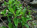 pétiole, ovales ou oblongues en coin, fortement crénelées, nervées, un peu coriaces, poilues ou presque sans poils, luisantes au-dessus, les florales supérieures plus courtes que les fleurs.