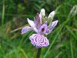 Fleurs blanches ou roses à labelle peu profondément trilobé, parcouru de lignes et tiretés purpurins, lobe médian assez étroit, à éperon assez fin, incurvé vers le bas, en épi allongé.