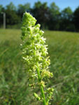 Fleurs jaune-verdâtre, en grappe allongée, à 6 pétales dépassant le