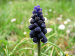 Fleurs bleu foncé, à odeur de prune, en grappe ovale ou ovale-bolongue, large de 2-3 cm, très serrée; pédicelles étalés-recourbés, un peu plus courts que la fleur.