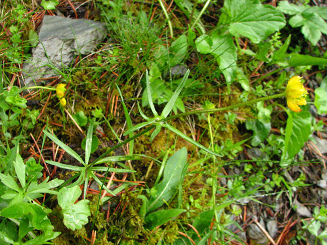 Fleurs jaunes, assez grandes; sépales étalés, légèrement poilus à poils courts; pétales souvent en partie avortés; réceptable sans poils; pédoncules non sillonnés.