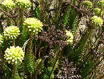 Tige de 30-50 cm, sans poils et glauque, robuste, dressée; les stériles à feuilles densément imbriquées sur 5 rangs.