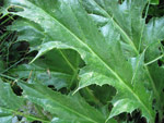 Feuilles grandes, en rosette appliquée au sol, vertes et