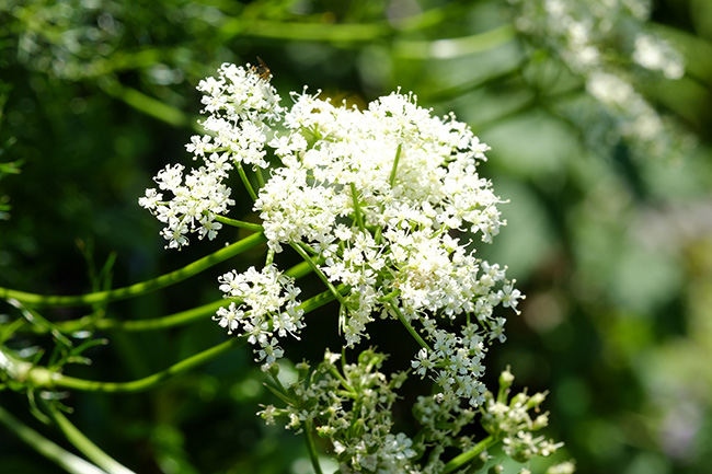 Fleurs blanches, en ombelles à 4-10 rayons presque égaux ; involucre à 1-3 folioles très inégales ; involucelle à plusieurs folioles linéaires, largement scarieuses aux bords ; calice à 5 dents aiguës ; pétales elliptiques, aigus aux deux bouts, entiers ; styles réfléchis, plus longs que le stylopode.