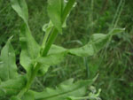 Feuilles grisâtres, à poils fins étalés sur les 2 faces, oblongues-lancéolées, les supérieures arrondies à la base et demi-embrassantes.