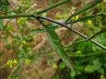 Petites fleurs jaune pâle, appliquées le long de la tige.